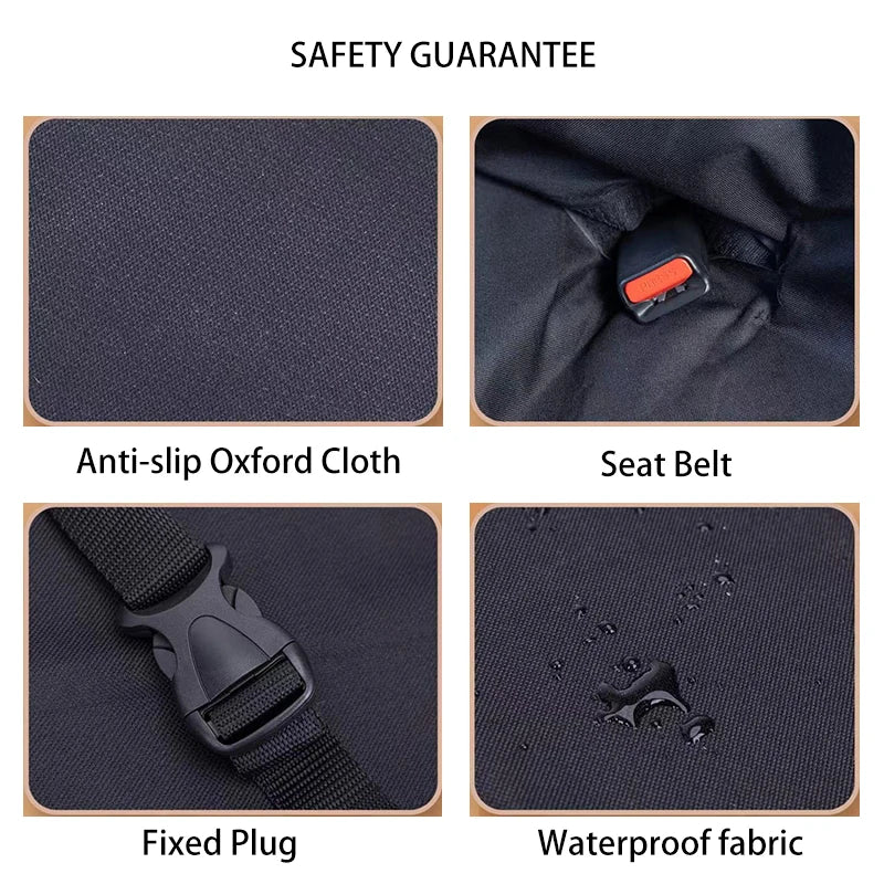 - Gemaakt van duurzame, waterafstotende oxford-stof. Deze robuuste stoelhoes biedt niet alleen bescherming voor uw stoel, maar zorgt ook voor extra comfort voor huisdieren. Hij beschermt tegen dierenharen, modderige poten, krassen, vuil en andere ongewenste sporen. Daarnaast is het ideaal voor ouders die de achterbank willen beschermen tegen morsen en rommel veroorzaakt door kinderen.